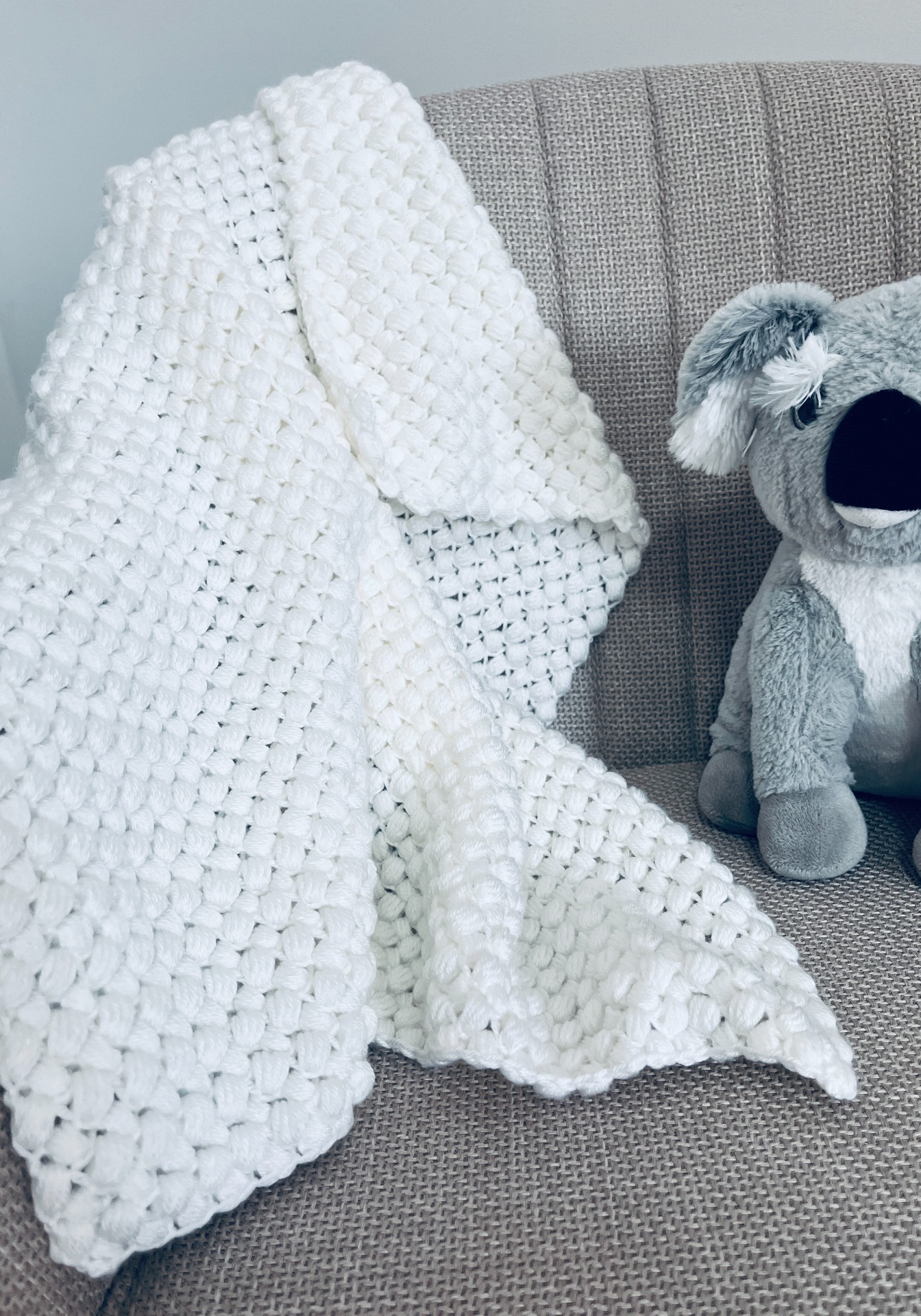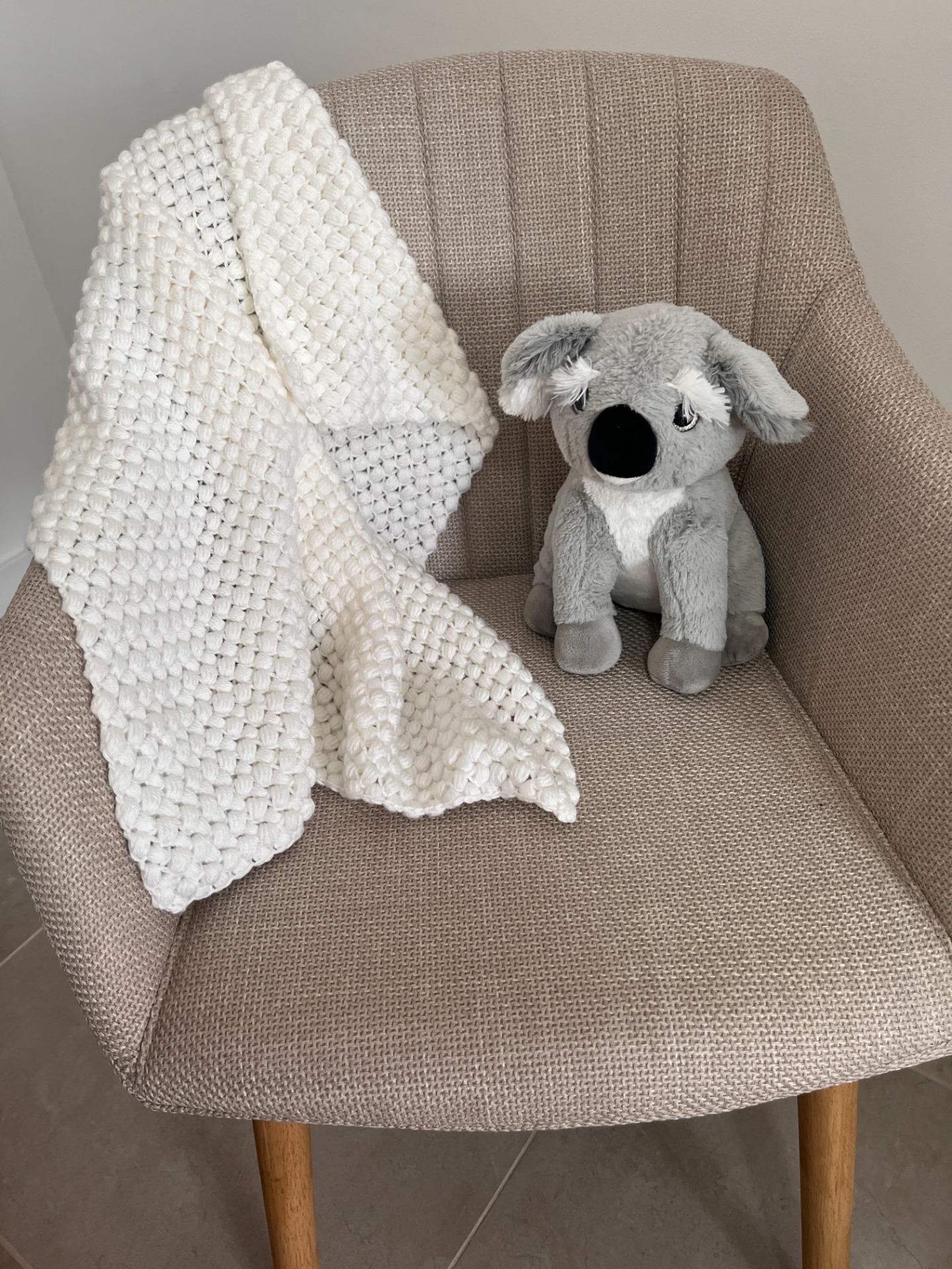 Kézzel horgolt vastag babatakaró. Ideális pólyáláshoz, rugalmas mégis meleg.